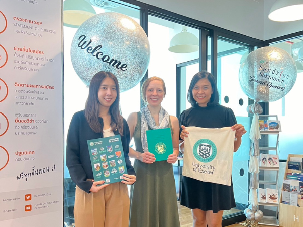 คุณ Rose Huber เจ้าหน้าที่จาก University of Exeter มหาวิทยาลัยชั้นนำจากกลุ่ม Russell Group ในสหราชอาณาจักร ได้เดินทางมาเยี่ยมเยียนพี่ ๆ Hands On ที่ออฟฟิศสาขาสุขุมวิทและออฟฟิศสาขาสีลม (สำนักงานใหญ่) และได้มีการอัปเดตข้อมูลล่าสุดของสถาบันเพื่อให้การดูแลทุกเรื่องเรียนต่อของพี่ ๆ Hands On เป็นไปได้อย่างดีที่สุด