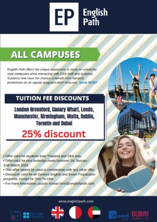 Tuition Fee Discount จาก English Path มูลค่า 25% ของค่าเรียน