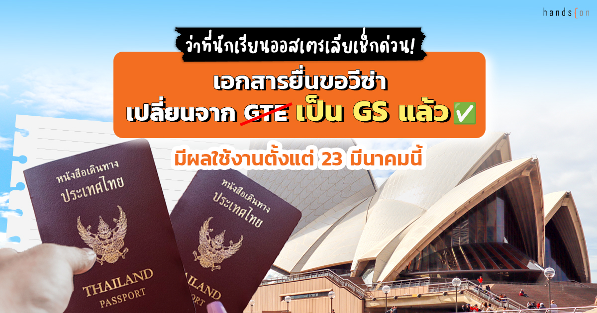 พี่ Hands On เลยขอชวนน้อง ๆ มาดูความเปลี่ยนแปลงในการเตรียมตัว เมื่อเรากำลังวางแผนเรียนต่อออสเตรเลียกันอยู่ จะได้รู้ข้อแตกต่างระหว่าง GS และ GTE อย่างชัดเจนในบทความนี้