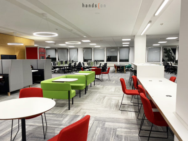 ตรงกลางมหาวิทยาลัยก็จะมีลานกว้างเอาไว้ให้นักเรียนมารวมตัวกันทำกิจกรรมได้ด้วย เช่น ตอนงานการแข่งขันร้องเพลงชื่อ Euro Star ที่คนอังกฤษเขาอินกัน พอถึงรอบชิงทุกคนก็จะมารวมตัว ดูถ่ายทอดสดกันกลางมหาวิทยาลัยตรงนี้แหละค่ะ คึกคักมาก ปีที่เจนไปก็เป็นปี 2022 มีการแข่งบอลโลกด้วยค่ะ เขาก็จะมารวมตัวกันดูถ่ายทอดสดที่ชั้นสองของตึกกลางมหาวิทยาลัยที่เป็นร้านบาร์ขนาดใหญ่ บรรยากาศก็ตื่นเต้น คึกคักและสนุกมาก ๆ