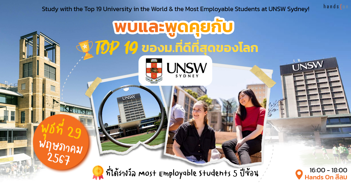A good opportunity has arrived for students who want to study in Australia with a university from Group of Eight, ranked in the world’s top 19 best universities. UNSW Sydney and Hands On Education Consultants organize this event for students and parents who want to get precise information from the university representative directly.