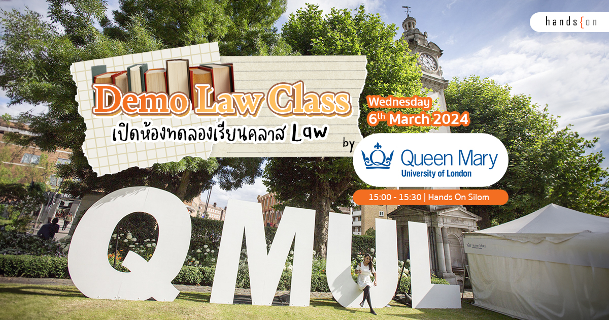 อยากไปเรียนกฎหมายที่อังกฤษห้ามพลาด! กับกิจกรรมสุดพิเศษ “เปิดห้องทดลองเรียนคลาส Law โดย Queen Mary University of London” ที่จะเปิดโอกาสให้น้อง ๆ ได้เข้ามาลองสัมผัสบรรยากาศการเรียนกฎหมายผ่านสัมมนาบรรยายโดย Dr. Jasem Tarawneh หนึ่งในอาจารย์ผู้สอนภาควิชา LLM จาก Queen Mary University of London