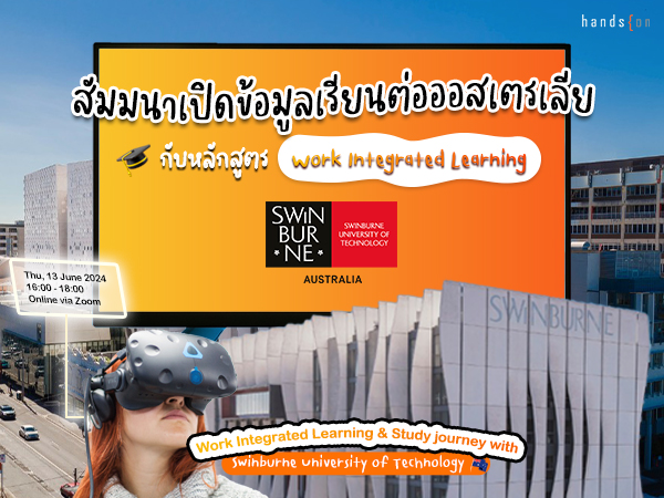 สัมมนาเรียนต่อ Work Integrated Learning and study journey with Swinburne University of Technology เปิดโอกาสให้น้อง ๆ ได้ทำความรู้จักกับมหาวิทยาลัย Swinburne และคอร์สเรียนที่น่าสนใจ ที่ประกอบด้วยโปรแกรม WIL เพื่อเก็บประสบการณ์ทำงาน